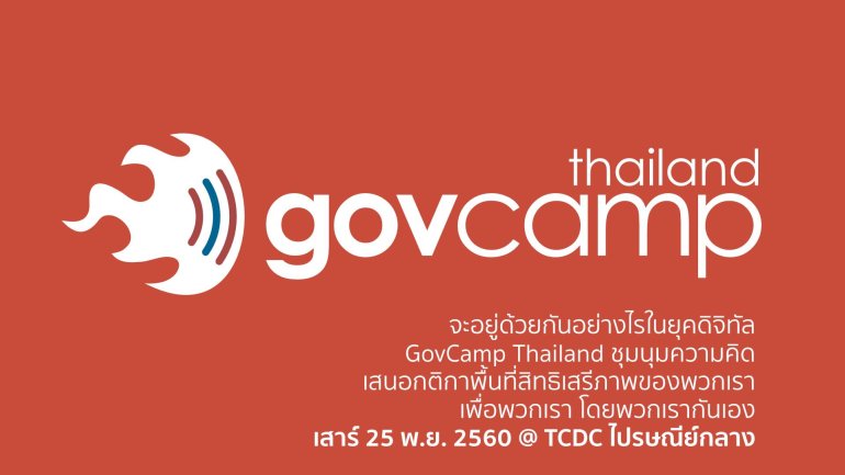 เครือข่ายพลเมืองเน็ต (Thai Netizen Network) ร่วมกับ มูลนิธิกองทุนไทย และ Social Technology Institute จัดกิจกรรมชุมนุมทางความคิดในรูปแบบ "open space" GovCamp ผู้เข้าร่วมทุกคนจะเขียนหัวข้อของตัวเองที่อยากนำเสนอให้คนอื่นได้ฟังไว้บนกระดานใหญ่ และลงคะแนนให้กับหัวข้อของคนอื่นที่ตัวเองอยากจะรับฟังแลกเปลี่ยน หัวข้อที่ได้รับคะแนนลำดับต้นๆ จะได้รับเลือกให้นำเสนอตามช่องเวลาที่มี ทุกคนที่เข้าร่วมสามารถเสนอหัวข้อได้ โดย GovCamp ครั้งนี้อยู่ในประเด็น "สิทธิเสรีภาพออนไลน์" เลือกประเด็นดิจิทัลและอินเทอร์เน็ตที่คุณสนใจมาหนึ่งหัวข้อ แล้วเล่าให้คนอื่นฟังว่า ถ้าเป็นคุณ คุณจะจัดการประเด็นนั้นอย่างไร แต่ละช่วงจะมีเวลา 40 นาที คุณอาจจะเล่าความคิดของคุณสัก 20 นาที และใช้เวลาที่เหลือแลกเปลี่ยนกับคนอื่นๆ ที่ก็สนใจประเด็นนี้เหมือนกันก็ได้ ไม่จำกัดหัวข้อพูดคุย อยากจะนำเสนอแบบไหน เอาเลยเต็มที่ ขอให้เว้นเวลาเอาไว้เพื่อการแลกเปลี่ยนกับคนอื่นบ้างก็พอ หัวข้อที่เป็นไปได้ เช่น การป้องกันอาชญากรรมคอมพิวเตอร์ ความเป็นส่วนตัวและการคุ้มครองข้อมูลส่วนบุคคล การเข้าถึงข้อมูลข่าวสารที่เกี่ยวกับบริการสาธารณะ การแสดงความคิดเห็นถึงการทำงานขององค์กรสาธารณะ ความสัมพันธ์ระหว่างรัฐกับเอกชนในการป้องกันระบบสารสนเทศที่สำคัญ การกำกับดูแลเนื้อหาที่อาจเป็นอันตรายกับเด็กและเยาวชน การส่งเสริมความมั่นคงปลอดภัยทางสารสนเทศให้กับประชาชนทั่วไป การสนับสนุนการสร้างเนื้อหาภาษาท้องถิ่น นโยบายการลงทะเบียนยืนยันตัวตนดิจิทัล ฯลฯ จะอยู่ด้วยกันอย่างไรในยุคดิจิทัล GovCamp Thailand ชุมนุมความคิด เสนอกติกาพื้นที่สิทธิเสรีภาพของพวกเรา เพื่อพวกเรา โดยพวกเรากันเอง เสาร์…ณัชธนัท จุโฬทก | 2972 days ago