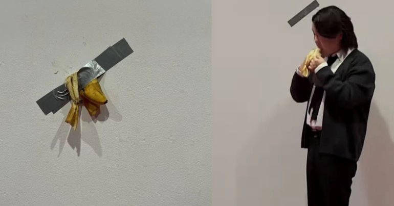 ก็มันหิว ยังไม่ได้กินข้าวเช้า นักศึกษาเกาหลีใต้ กินงานศิลปะกล้วยที่จัดแสดงในพิพิธภัณฑ์โซล
