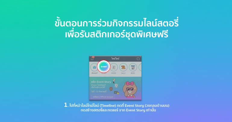 มามะไม่ต้องพูดพร่ำทำเพลง! วันนี้ LINE ใจดี แจกสติกเกอร์ BROWN & FRIENDS: Nice Action! อายุใช้งาน 90 วันให้ฟรี ๆ วิธีการก็ง่าย ๆ ตามนี้เลยครับผม เข้าไปใน LINE ของเราแล้วเข้าไปที่เมนู Timeline จากนั้นกดไปที่ไอคอนวงกลมที่เขียนว่า "Event" (วงกลมสีแดงไว้ให้ในรูปละ) ซึ่งเป็นฟีเจอร์ Story ของทางไลน์ พอกดเข้าไปจะเป็นวิดีโอสั้น ๆ แนะนำฟีเจอร์ Story ซึ่งถ้าอ่านเสร็จสรรพแล้ว หรือพร้อมเลยก็กดไปที่ปุ่ม "สร้างสตอรี่เลย!" ทำการสร้างสตอรี่อะไรของคุณไปก็ได้ครับ จากนั้นก็ทำการกดแชร์ พอแชร์สตอรี่ของเราเสร็จปั๊บ ก็จะมีแอคเคานต์ LINE Timeline Notice ทักมาหาเรา ก็ให้กดเข้าไปแล้วกดเข้าไปยังลิงก์ "ไปเช็ครางวัลสติ๊กเกอร์" เราก็จะเด้งไปยังหน้าดาวน์โหลดสติกเกอร์ซี่งมันฟรี! ซึ่งก็จะมีอายุใช้งานทั้งสิ้น 90 วันครับ กด "ดาวน์โหลด" เอาไปใช้กันได้เลย! พิสูจน์อักษร : สุชยา…วรายุทธ เชิดศรีชูเกียรติ | 2337 days ago
