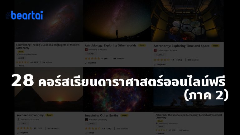 แม้จะยังอยู่ในยุคโควิด แต่คงปฏิเสธไม่ได้ว่าห้วงเวลานี้ก็ถือเป็นยุคทองของเทคโนโลยีและการเรียนรู้เช่นเดียวกัน ความสำเร็จในการนำมนุษย์ขึ้นสู่อวกาศโดย SpaceX บริษัทภาคเอกชนในสัปดาห์ที่ผ่านมา ยิ่งทำให้เกิดความตื่นตัวไปทั่ว อีกไม่ช้า เรื่องราวดาราศาสตร์และอวกาศจะใกล้ตัวเรามากขึ้นเรื่อย ๆ เพื่อเข้าสู่ยุคอวกาศอย่างเท่าทันไปด้วยกัน สถาบันวิจัยดาราศาสตร์แห่งชาติ (องค์การมหาชน) (NARIT) สถาบันเพื่อการวิจัยดาราศาสตร์หนึ่งเดียวของไทย แนะนำคอร์สดาราศาสตร์ออนไลน์จากมหาวิทยาลัยชั้นนำทั่วโลกไว้ถึง 57 คอร์สด้วยกัน แต่เพื่อผู้เริ่มต้นและผู้เริ่มสนใจ เราจึงคัดสรรเฉพาะ 28 คอร์สเรียนดาราศาสตร์ออนไลน์ฟรีที่ผู้ไม่มีพื้นฐานก็สามารถเรียนได้มาแนะนำ โดยคลาสเรียนเหล่านี้ จะเรียนเป็นภาษาอังกฤษทั้งหมด คอร์สเรียนดาราศาสตร์ออนไลน์ฟรีทั้ง 28 คอร์ส แบ่งออกเป็นคอร์สจากเว็บไซต์ OpenLearn FutureLearn EdX และ Coursera โดยเราได้ไล่เรียงตามความเข้มข้นยากง่ายของเนื้อหา ในบทความนี้จะนำเสนอเบื้องต้นก่อน 16 คอร์สแรก และมีภาคต่อเป็นคอร์สที่มีเนื้อหาลึกขึ้นอีก 12 คอร์ส (สำหรับภาคหลัง ไม่ต้องมีพื้นฐานก็เรียนได้เช่นกัน แต่อาจจะต้องมีความรู้ฟิสิกส์ระดับมัธยมปลายมาบ้าง) บางคอร์สเป็นคอร์สเรียนฟรีเท่านั้นไม่มีประกาศนียบัตร บางคอร์สก็มีใบรับรองให้หากบริจาคหรือลงเรียนแบบเสียค่าใช้จ่ายตามที่กำหนด สำหรับเงื่อนไขของผู้เรียน สนใจแบบไหนลองอ่านรายละเอียดให้ถี่ถ้วนก่อนลงเรียนกันนะครับ สนใจคอร์สไหน กดที่ชื่อคอร์สได้เลย เราลงลิงก์ไว้ให้แล้ว 7 คอร์สดาราศาสตร์ขั้นต้นจาก OpenLearn Open Learn เป็นเว็บไซต์เพื่อการศึกษาฟรี…วัฒนา ขจัดสารพัดภัย | 2048 days ago