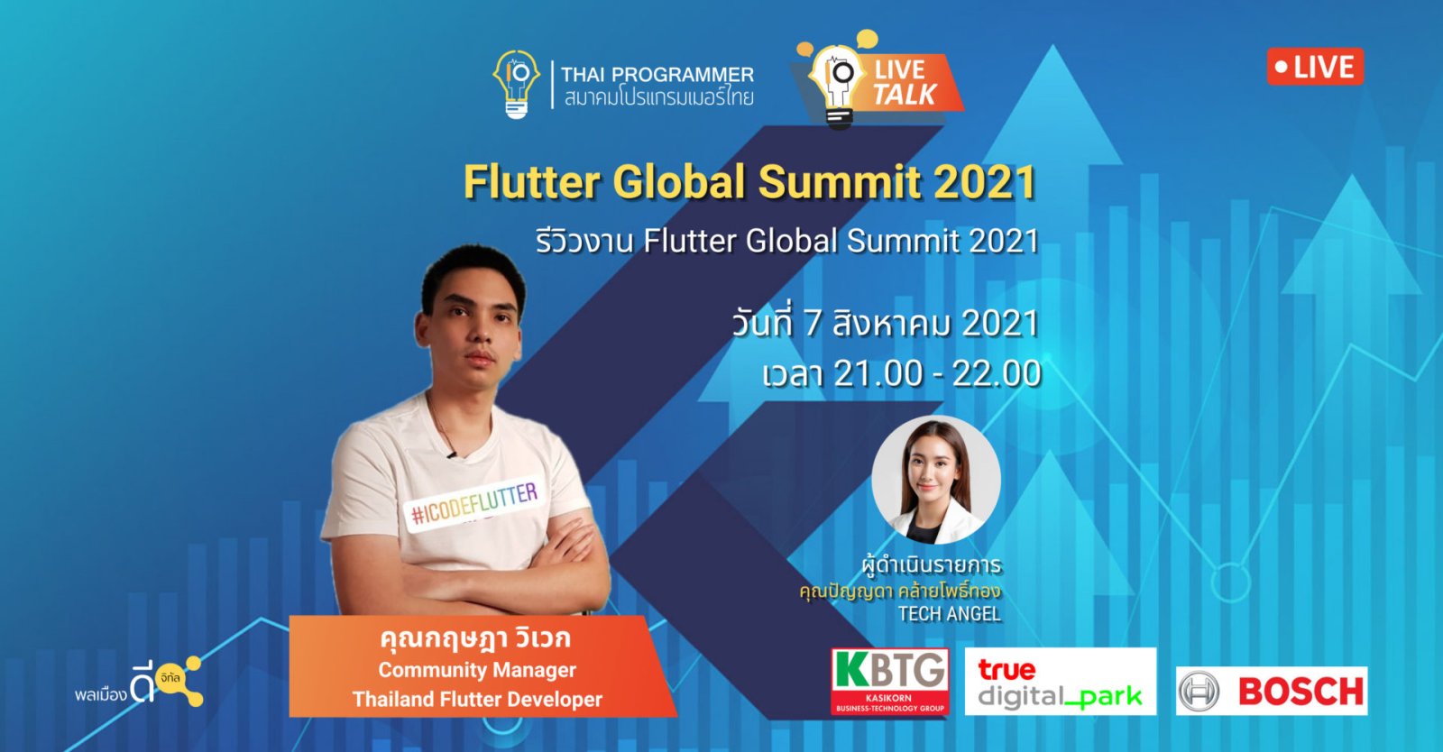 07/08/2021️หากคุณเป็นคนใช้ Flutter จะต้องไม่พลาด Live นี้ ที่จะพาไปเจาะลึกงานระดับโลกอย่าง Flutter Global Summit ร่วมตอบคำถามโดยคุณกฤษฎา วิเวกCommunity ManagerThailand Flutter Developer สามารถติดตาม Thailand Flutter Developer ได้ที่Facebookhttps://www.facebook.com/groups/1330912973657674/ รับชมได้ที่…