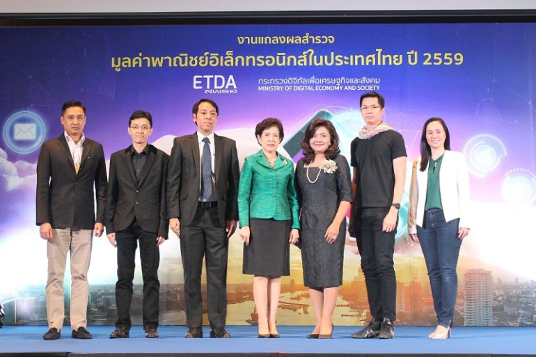 สำนักงานพัฒนาธุรกรรมทางอิเล็กทรอนิกส์ (องค์การมหาชน) (สพธอ.) หรือ ETDA (เอ็ตด้า) กระทรวงดิจิทัลเพื่อเศรษฐกิจและสังคม เปิดเผยผลการสำรวจมูลค่าพาณิชย์อิเล็กทรอนิกส์ในประเทศไทย ปี 2559 พบว่า ในปี 2558 มูลค่าพาณิชย์อิเล็กทรอนิกส์หรืออีคอมเมิร์ซ (E-Commerce) ไทย มีมูลค่ากว่า 2.24 ล้านล้านบาท ส่วนใหญ่เป็นมูลค่าอีคอมเมิร์ซประเภทธุรกิจขายให้กับธุรกิจ (B2B) 1.33 ล้านล้านบาท มูลค่าขายที่ธุรกิจขายให้กับผู้บริโภค (B2C) ประมาณ 0.51 ล้านล้านบาท และมูลค่าขายที่ธุรกิจขายให้กับภาครัฐ (B2G) ประมาณ 0.40 ล้านล้านบาท พร้อมคาดการณ์ปี 2559 จะเติบโตแบบก้าวกระโดด 12.42% มูลค่ารวมสูงถึง 2.52 ล้านล้านบาท ETDA ดำเนินการสำรวจมูลค่าอีคอมเมิร์ซอย่างต่อเนื่องมาจนถึงครั้งนี้ เพื่อเก็บรวบรวมข้อมูลสถิติมูลค่าอีคอมเมิร์ซในประเทศไทยให้มีความครอบคลุมและเป็นที่ยอมรับในระดับสากล ซึ่งจะช่วยให้หน่วยงานภาครัฐและภาคเอกชน ตลอดจนผู้มีส่วนเกี่ยวข้องในห่วงโซ่อีคอมเมิร์ซของไทย สามารถนำไปใช้อ้างอิงหรือเปรียบเทียบ รวมถึงใช้ประกอบการวางนโยบาย จัดทำแผนบริหารจัดการเชิงกลยุทธ์และกำหนดแผนการดำเนินธุรกิจ ทั้งในระดับองค์กรและระดับประเทศ ให้สอดคล้องกับสภาพแวดล้อมทางการตลาดที่เปลี่ยนแปลงไป ซึ่งจะช่วยพัฒนาธุรกิจอีคอมเมิร์ซให้สามารถแข่งขันได้อย่างมีประสิทธิภาพและยั่งยืน ทั้งในระดับภูมิภาคและระดับสากล คุณสุรางคณา วายุภาพ ผู้อำนวยการ…salinee tintumrong | 3393 days ago