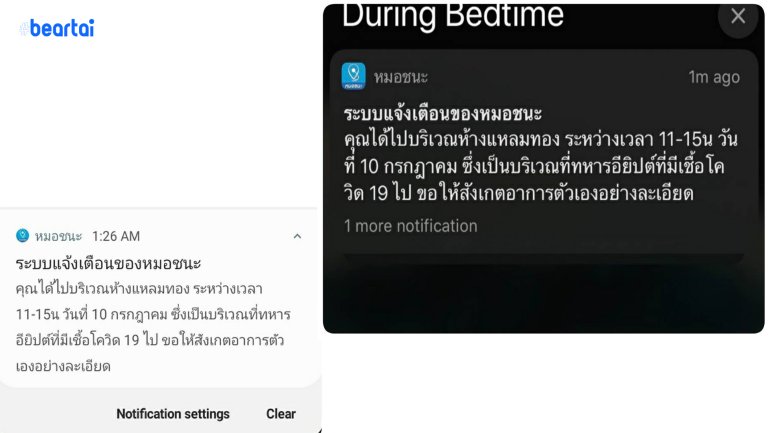 “หมอชนะ” แจ้งเตือนผู้ใช้งาน หลังพบไปห้างช่วงเดียวกับทหารอียิปต์ที่ติดโควิด