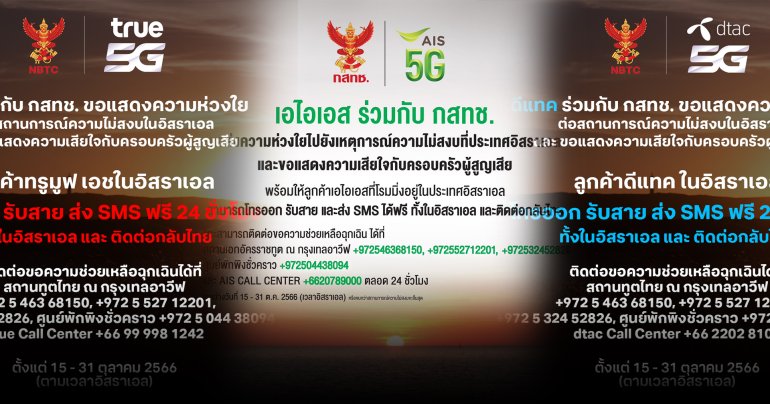 AIS DTAC TRUE เปิดให้ลูกค้าที่อิสราเอล โทรและ SMS ฟรี ทั้งภายในอิสราเอล และกลับมายังครอบครัวในประเทศไทย