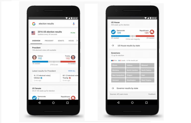 Gooogle Search เพิ่มลูกเล่นแสดงผลเลือกตั้งผู้นำสหรัฐฯ 8 พ.ย.นี้