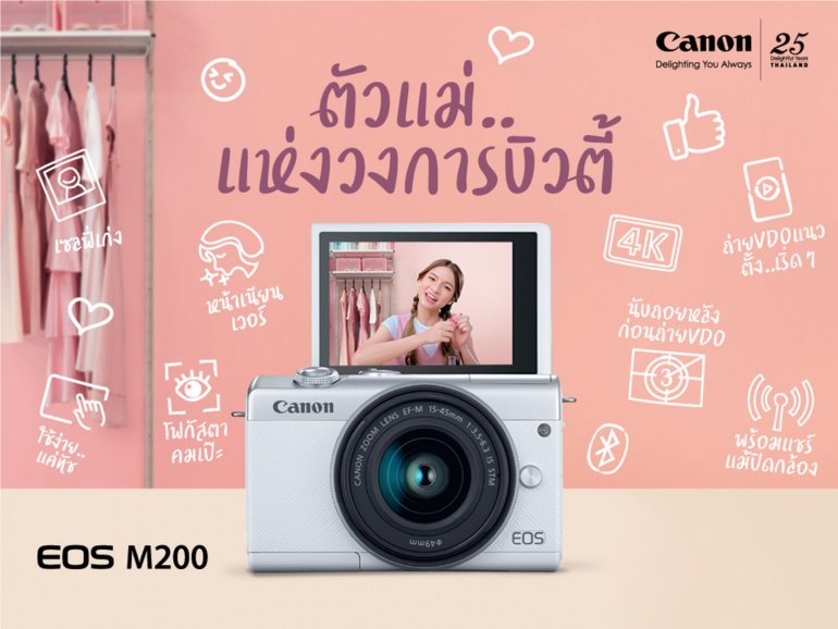 แคนนอนเอาใจตัวแม่สายโซเชียลบิวตี้ เผยโฉมกล้องมิเรอร์เลส Canon EOS M200 ราคาเริ่มต้น 19,990 บาท