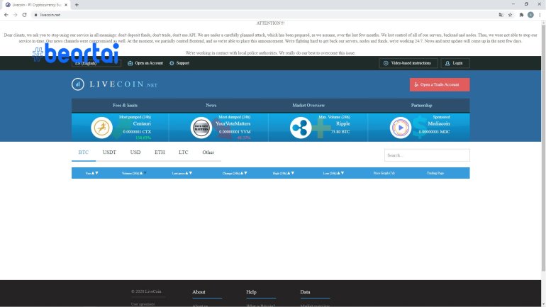 Livecoin บริการแลกเปลี่ยนสกุลเงินดิจิทัลของรัสเซียถูกแฮกปรับอัตราแลกเปลี่ยน 10 – 15 เท่า