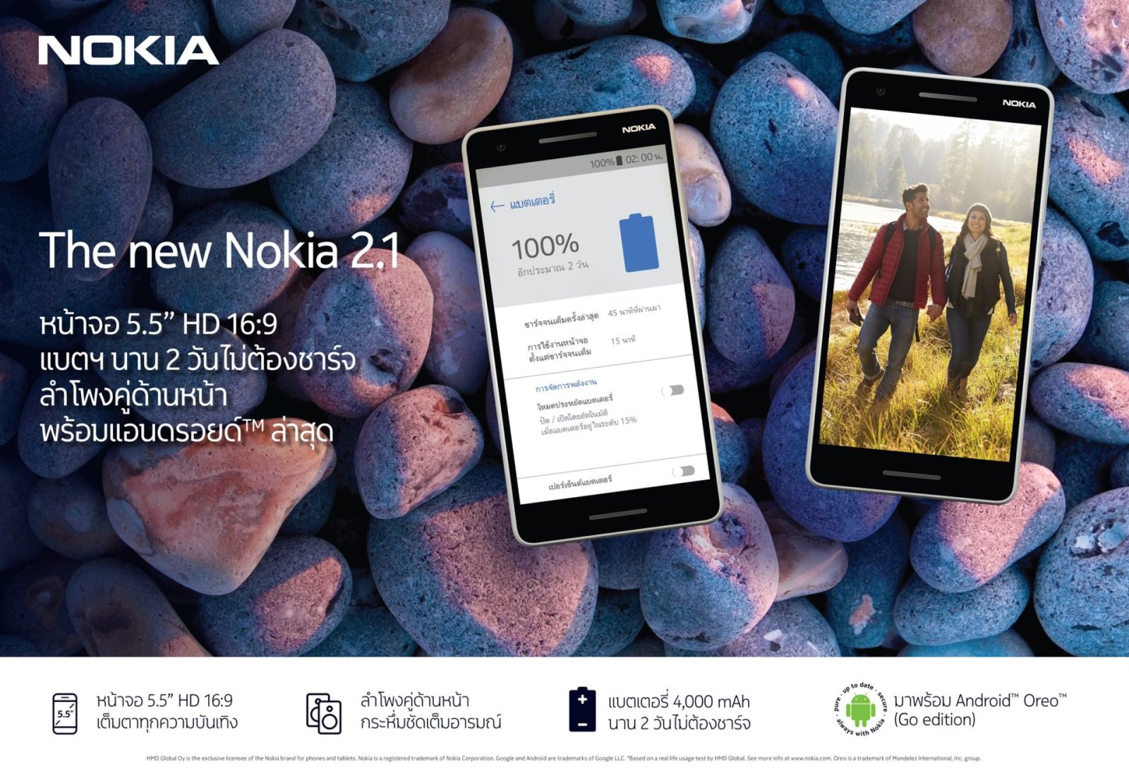 20/08/2018เอชเอ็มดี โกลบอล ผู้จำหน่ายสมาร์ทโฟนแบรนด์โนเกีย ประกาศเปิดตัวสมาร์ทโฟน new Nokia 2.1 อย่างเป็นทางการแล้วในประเทศไทย พร้อมวางจำหน่ายที่ร้านค้าและตัวแทนจำหน่ายทั่วประเทศตั้งแต่วันนี้เป็นต้นไป ในราคา 3,390 บาท สัมผัสประสบการณ์การใช้งานเพื่อความบันเทิงที่ยาวนานขึ้นกว่าเดิม ด้วยประสิทธิภาพในการใช้งานที่เหนือกว่าสมาร์ทโฟนรุ่นก่อนหน้าถึง 50% new Nokia 2.1 มาพร้อมหน้าจอที่ใหญ่ขึ้น HD 5.5 นิ้ว…