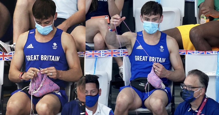 นักกระโดดน้ำเหรียญทอง Tom Daley ‘นั่งถักนิตติง’ ระหว่างชมโอลิมปิก