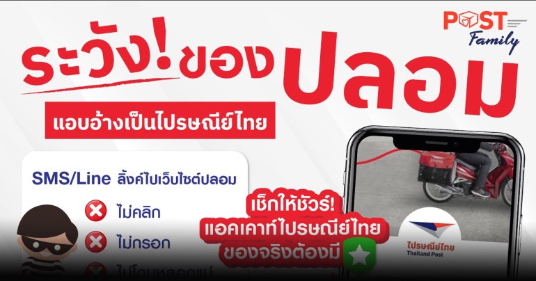 ไปรษณีย์ไทยเตือน! มิจฉาชีพส่ง SMS / โทรติดต่อ “หลอกขอข้อมูลส่วนตัว อ้างคะแนนสะสมใกล้หมดอายุ