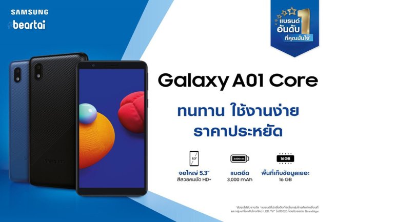 Samsung เปิดตัว Galaxy A01 Core กล้อง 8MP ทนทาน ใช้งานง่าย ราคาประหยัด ราคาเริ่มต้นเพียง 2,499 บาท