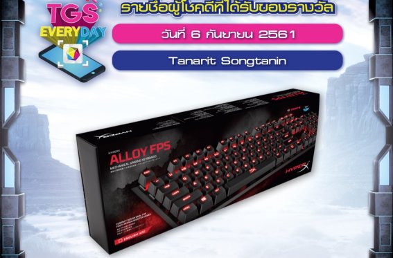 ประกาศชื่อผู้โชคดีกับ กิจกรรม TGS EVERYDAY จากการซื้อบัตรเข้างาน หรือ เสื้อยืด Thailand Game Show 2018 ทาง TrueMoney Wallet รางวัลประจำวันที่ 6 กันยายน 2561 : HyperX Alloy FPS ...อ่านต่อ