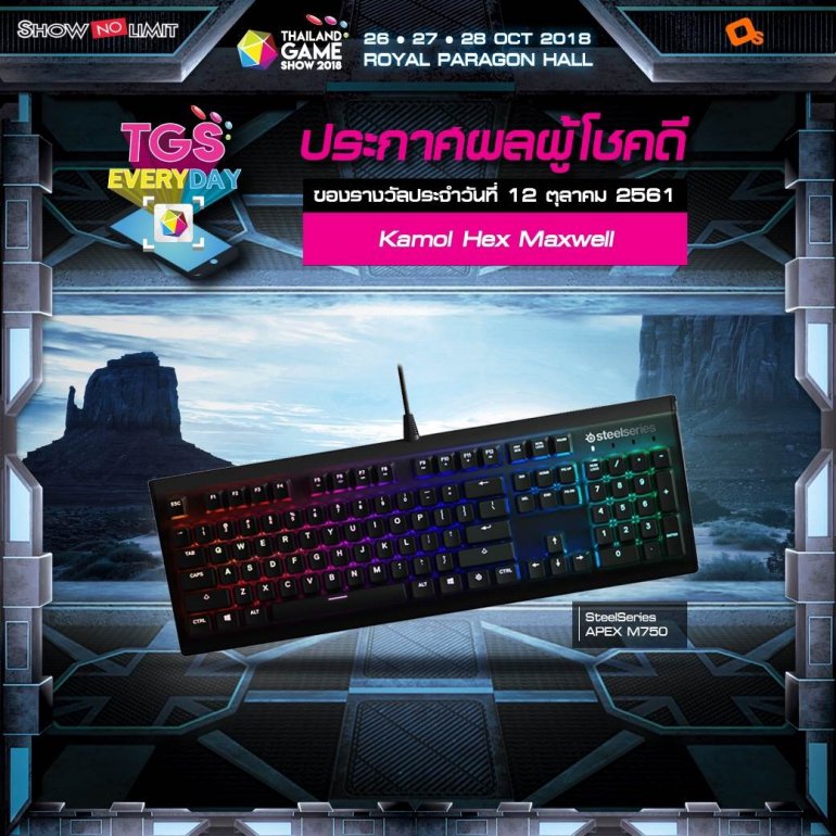 ประกาศผู้โชคดีกิจกรรม TGS EVERYDAY ประจำวันที่ 12 ต.ค. 61 ซื้อบัตรงาน TGS 2018 แล้วมาเป็นผู้โชคดีคนต่อไป