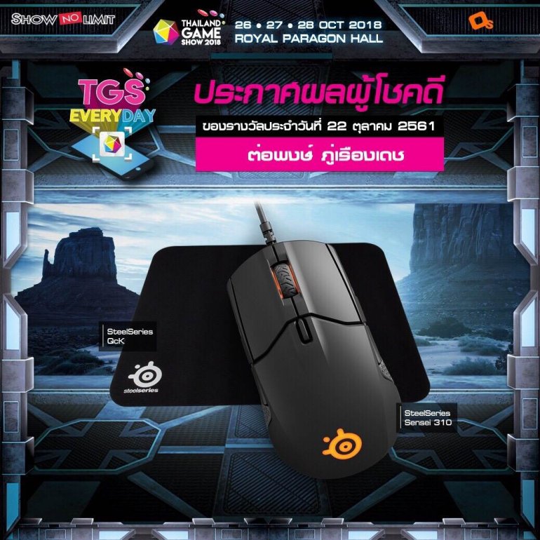 ประกาศผู้โชคดีกิจกรรม TGS EVERYDAY ประจำวันที่ 15 ต.ค. 61 ซื้อบัตรงาน TGS 2018 แล้วมาเป็นผู้โชคดีคนต่อไป