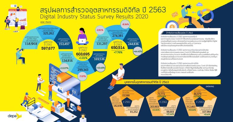 ดีป้า” เผยผลสำรวจ 3 อุตสาหกรรมดิจิทัลไทย ปี 2563 ซอฟต์แวร์ ฮาร์ดแวร์และบริการด้านดิจิทัล มาแรง