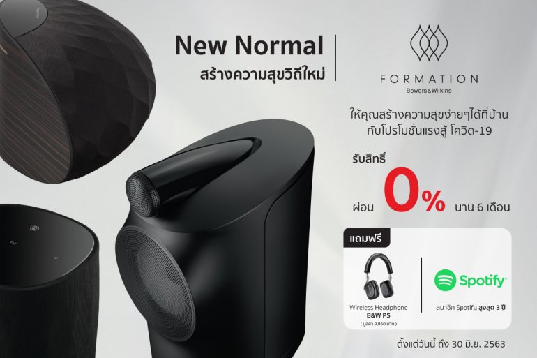 บริษัท มิวสิคพลัส ซีนีม่า จำกัด ในเครือโซนิค วิชั่น ผู้นำเครื่องเสียงนำเข้าระดับไฮเอนด์กว่า 20 ปี คืนกำไรลูกค้าต้อนรับการปรับเปลี่ยนสู่วิถีชีวิตแบบปกติใหม่ (New Normal) สนับสนุนให้คนไทยสร้างความสุขในการอยู่บ้าน ขนทัพชุดเครื่องเสียงพรีเมียมไร้สาย Series Formation แบรนด์โบเวอร์แอนด์วิลกินส์ (Bowers & Wilkins) จัดโปรโมชันพิเศษ ผ่อน 0% นาน 6 เดือน พร้อมแถมฟรีหูฟังไร้สายรุ่น B&W P5 พร้อมสมาชิก Spotify นานสูงสุด 3 ปี ตั้งแต่วันนี้ถึง 30 มิถุนายน 2563 คุณสมัคร สมัครคามัย ประธานเจ้าหน้าที่บริหาร บริษัท มิวสิคพลัสซีนีม่า จำกัด ในเครือโซนิค วิชั่น กล่าวว่า “ในสถานการณ์การแพร่ระบาดของเชื้อไวรัสโควิด-19 ทำให้การดำเนินชีวิตของผู้คนเปลี่ยนแปลงไป และถึงแม้สถานการณ์ในประเทศไทยจะเริ่มคลี่คลายดีขึ้น และมีมาตรการผ่อนปรนการล็อคดาวน์ (Lock down) จากรัฐบาลในระยะที่ 2…
