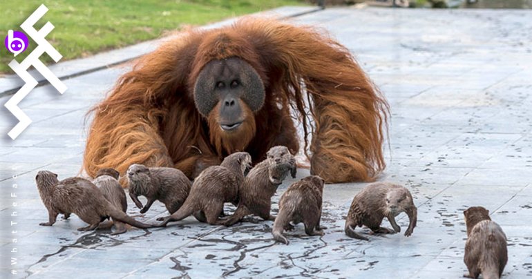 ชมภาพความน่ารักของครอบครัวอุรังอุตังเล่นกับฝูงนาก ในสวนสัตว์เบลเยี่ยม