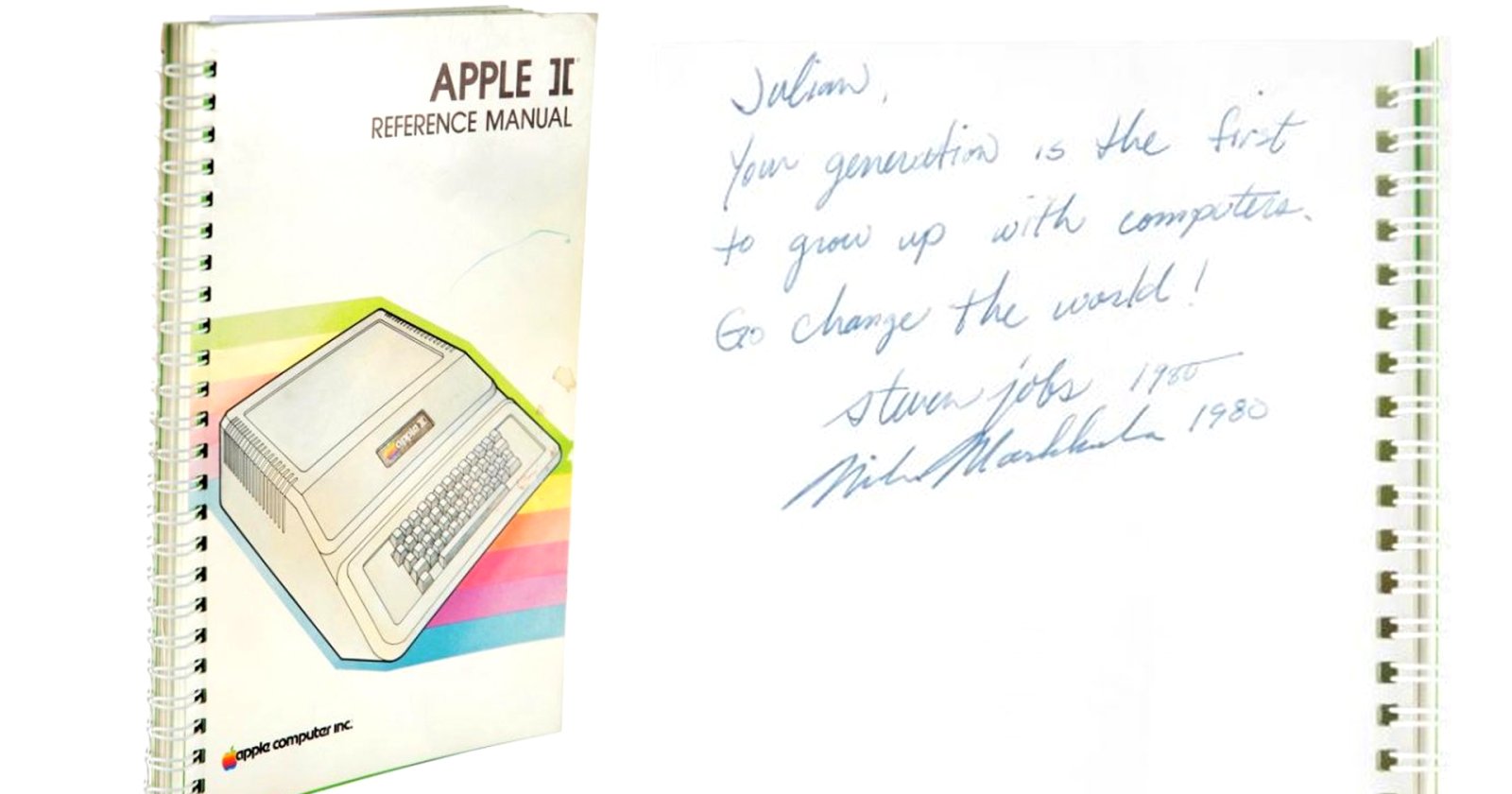 คู่มือการใช้คอมพิวเตอร์ Apple II จากปี 1980 ที่มีลายมือเขียนข้อความและลายเซ็นของ สตีฟ จ็อบส์ (Steve Jobs) ผู้ร่วมก่อตั้งแอปเปิ้ลและอดีตซีอีโอผู้ล่วงลับ ได้รับการประมูลขายไปในราคา 787,484 เหรียญสหรัฐ หรือประมาณ 26.2 ล้านบาท จากบริษัทประมูลแห่งหนึ่งในบอสตัน22/05/2020