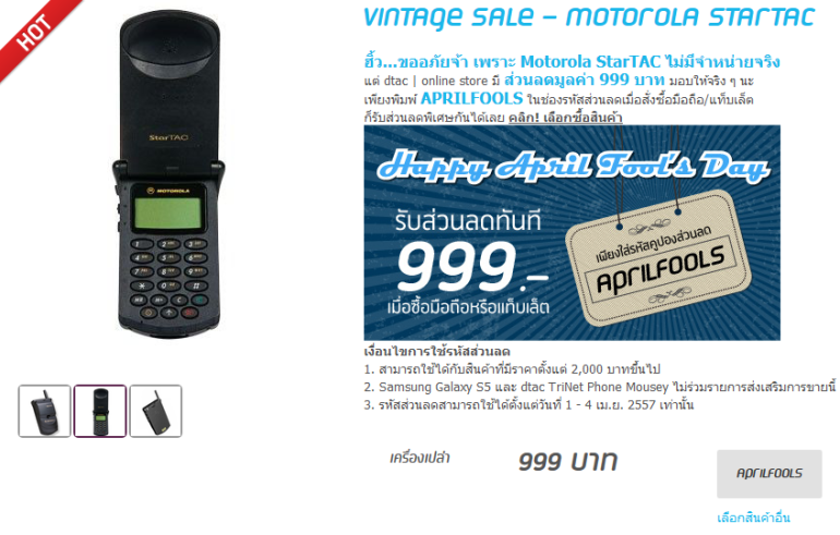 ในวันที่ 1 เมษายน ของทุกปี จะมีประเพณีที่เรียกว่า April Fools' Day หรือวันเมษาหน้าโง่ ซึ่งบริษัทต่างๆ จะคิดมุกแกล้งผู้ที่ติดตามข่าวสารกันอย่างถ้วนหน้าภายใน 1 วัน ซึ่งบางครั้งก็อาจส่งผลเสียโดยไม่ตั้งใจ แต่ก็สร้างความบันเทิงให้กับผู้บริโภคได้อย่างมาก และมีความสร้างสรรค์จนแทบจะแยกไม่ออกเลยว่า "จริง" หรือ "แกล้งเล่น" ยกตัวอย่างเช่น Google เปิดตัว Google Tulips สำหรับคุยกับต้นไม่ได้ (คลิกอ่านเพิ่มเติมที่นี่) Google ให้เล่นเกม Snake บนเว็บไซต์ Google Maps Snake เป็นระยเวลาประมาณ 1 สัปดาห์ ซึ่งเล่นได้จริงๆ ด้วย (คลิกอื่นเพิ่มเติมที่นี่) นอกจากนี้ยังมีอีกหลายบริษัทเทคโนโลยีอีกมากมายที่สร้างสรรค์มุกหลอกอำผู้ชมได้อย่างยอดเยี่ยม ไม่ว่าจะเป็น น้ำโซดา SodaStreamMe สก็อตต์ เคลลี นักบินอวกาศที่ปลดเกษียณไปแล้วของ NASA ได้ร่วมกับ SodaStream ผู้ผลิตน้ำดื่มโซดาชื่อดัง ในการเปิดตัวโฆษณา SodaStreamMe เครื่องผลิตน้ำอัดลมโดยใช้ก๊าซคอร์บอนไดออกไซด์จากภายในร่างกายคน https://youtu.be/NCcX6EL9GMY ThinkGeek เปิดตัวผลิตภัณฑ์สุดประหลาด ThinkGeek เว็บไซต์จำหน่ายสินค้าน่ารักชื่อดังของสหรัฐอเมริาก…ปรีดี ฤกษ์วลีกุล | 2478 days ago