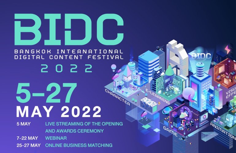 กลับมาอีกครั้งต่อเนื่องเป็นครั้งที่ 9 แล้วสำหรับ “Bangkok International Digital Content Festival 2022” หรือ “BIDC 2022”เทศกาลดิจิทัลคอนเทนต์ที่ยิ่งใหญ่แห่งปี กับคอนเซ็ปต์ “Metaverse” พร้อมหลากหลายกิจกรรมที่ต้องห้ามพลาดระหว่างวันที่ 5 - 27 พฤษภาคม 2565 ในรูปแบบ Virtual Event เต็มรูปแบบ !!! ตั้งแต่ พิธีเปิดและงานประกาศรางวัลด้านดิจิทัลคอนเทนต์ BIDC Awards ที่จะได้พบกับเหล่าคาแรคเตอร์ชื่อดัง พร้อมทั้ง Virtual Emcee บนเวทีเสมือนจริงครั้งแรก! การจัด Webinar จากกูรูวงการดิจิทัลคอนเทนต์ที่มีผลงานระดับโลกทั้งชาวไทยและต่างชาติ เจาะลึกทุกประเด็นเกี่ยวกับ Game, Animation CG VFX, Character, e-Learning, Emerging Technology รวมทั้งหัวข้อในกระแสอย่าง Metaverse, Blockchain, Gamefi, Avatar, NFT ฯลฯ พร้อม Workshop ติดอาวุธให้คุณพร้อมใช้งานจริงจากวิทยากรขั้นเทพในวงการดิจิทัลคอนเทนต์ ทั้งไทยและต่างประเทศ…กองบรรณาธิการ BT | 1356 days ago