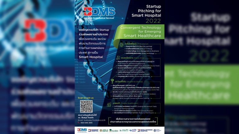 BDMS ชวน Startup รุ่นใหม่ ประชันผลงานใน “Startup Pitching For Smart Hospital 2022” เพื่อชิงเงินรางวัลรวม 250,000 บาท