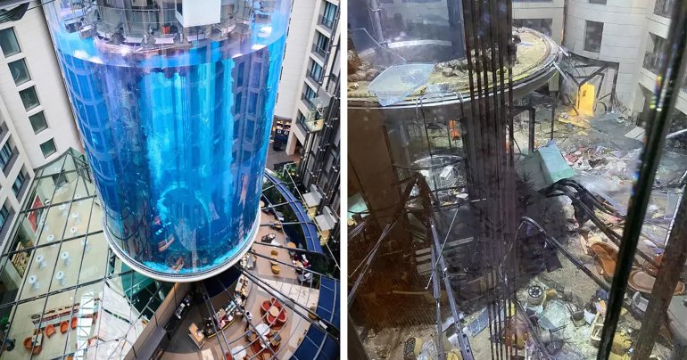 สงสารปลา อะควาเรียมสูง 14 เมตร ความจุ 1 ล้านลิตร กลางกรุงเบอร์ลินแตก ปลา 1,500 ตัว ตายเรียบ