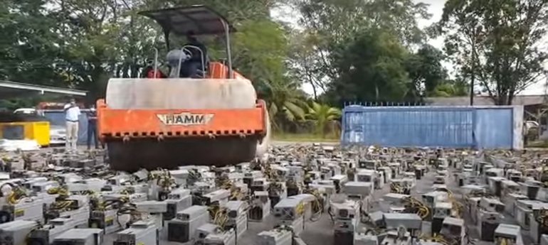 เผยคลิปตำรวจมาเลเซียขับรถบดทับเครื่องขุด Bitcoin มูลค่ากว่า 50 ล้านบาท!