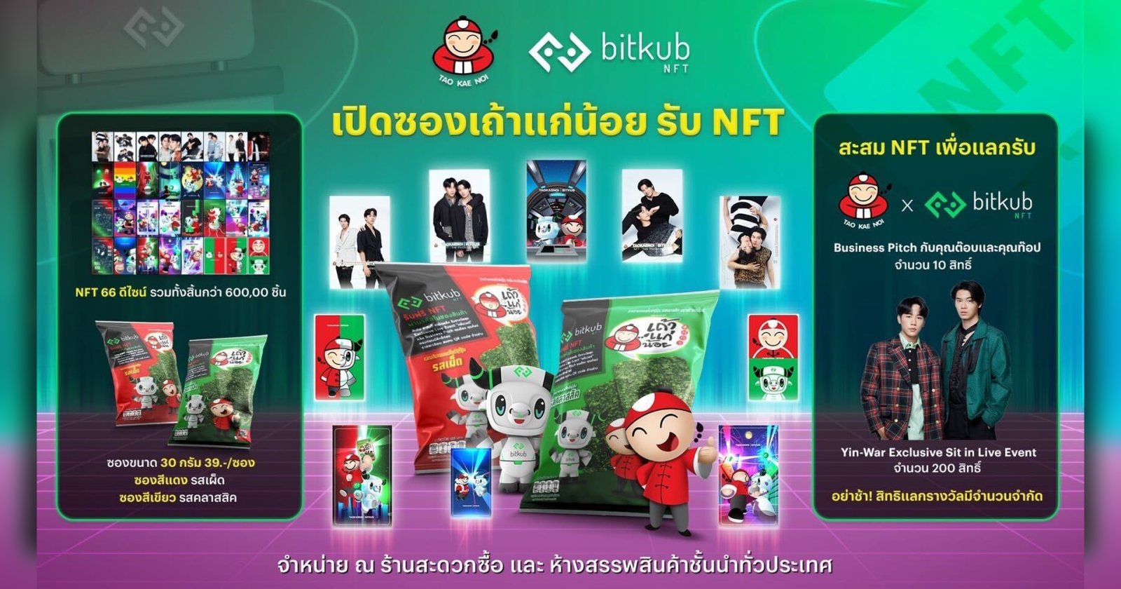 16/08/2022Bitkub NFT แพลตฟอร์มศูนย์รวม NFT (Non-Fungible Token) ในรูปแบบของตลาดแรก ซึ่งในปัจจุบันเป็นตลาด NFT ที่มีการใช้งานแพร่หลายมากที่สุดในประเทศไทย และเป็นศูนย์รวมผู้สร้างสรรค์ผลงาน NFT ที่มีการนำมาใช้งานในรูปแบบที่หลากหลาย ร่วมกับ Taokaenoi ยักษ์ใหญ่แห่งวงการขนมสาหร่าย ได้ริเริ่มแคมเปญ NFT : THE…