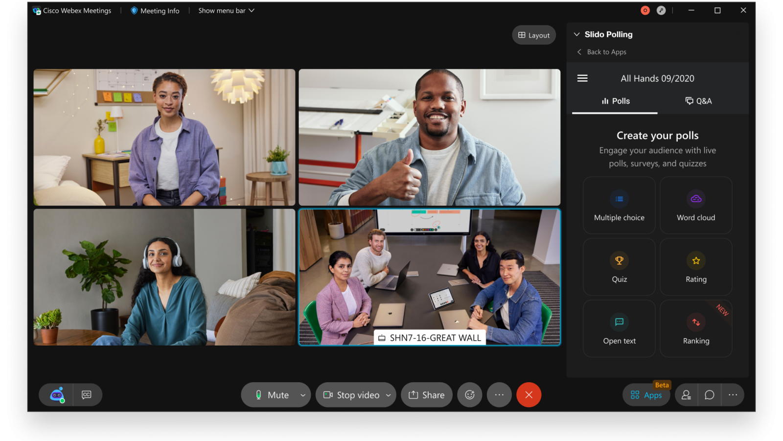 08/06/2021อังคารที่ 8 มิถุนายน ซิสโก (Cisco) เผยว่าเตรียมจะปล่อยฟีเจอร์ใหม่ใน Webex ประกอบด้วย การตัดเสียงรบกวนเบื้องหลัง เพื่อเน้นเสียงผู้พูดหลักโดยจะตัดเสียงพูดและเสียงรบกวนที่อยู่รอบข้างออกไป (จะมาใน ส.ค.) รวมทั้งการเพิ่ม โพลและแบบสอบถาม เพื่อให้ผู้นำประชุมหรือผู้ร่วมอภิปรายสามารถใช้โพลหรือแบบสอบถามขอความคิดเห็นโดยการโหวตลงคะแนนจากผู้ร่วมประชุม