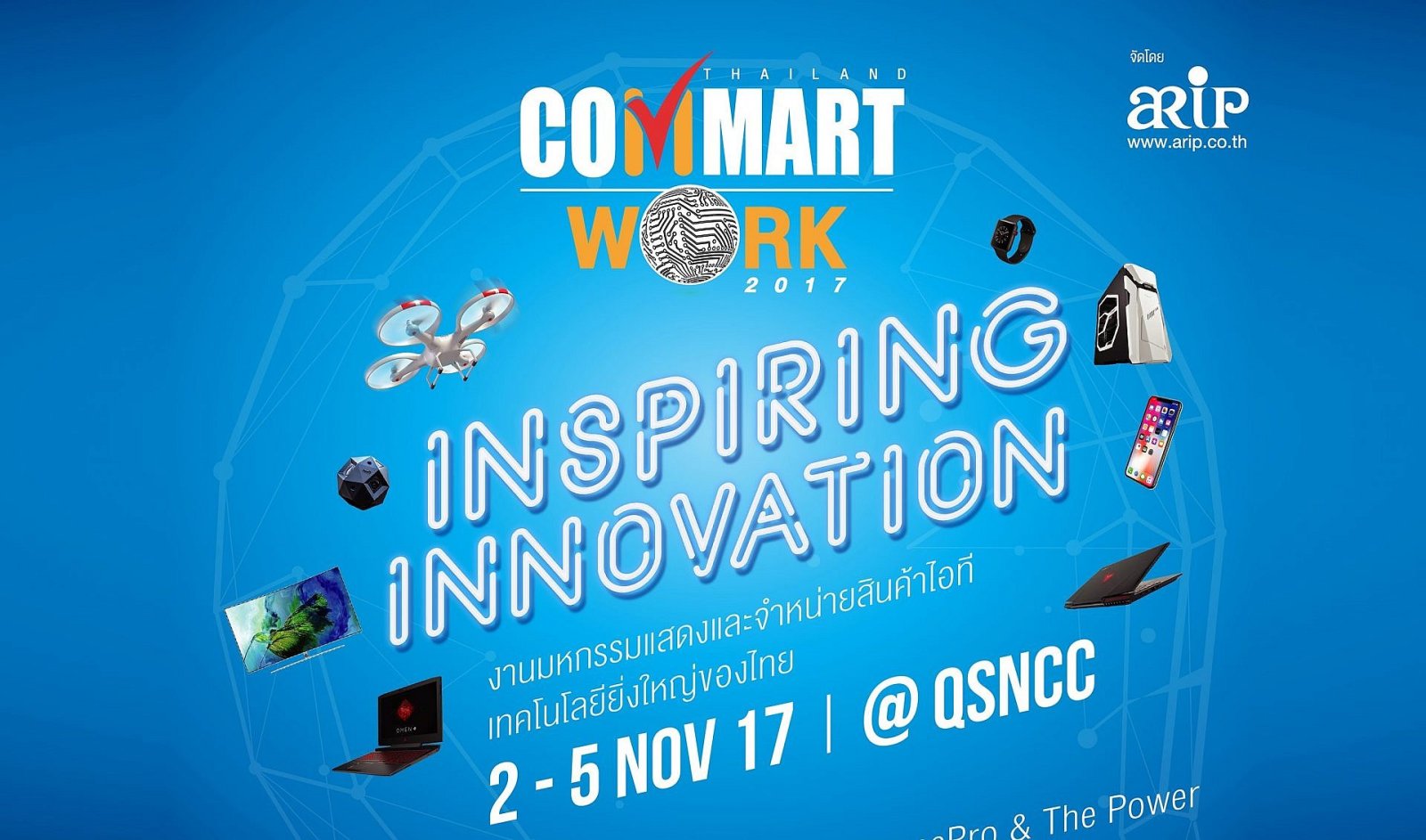 06/10/2017จัดใหญ่ส่งท้ายปี งาน COMMART WORK 2017 บมจ.เออาร์ไอพีพร้อมด้วยพันธมิตร จับมือแถลงข่าวถึงความพร้อมในการจัดงาน เตรียมไฮไลท์สินค้าและนวัตกรรมมากมายให้คนไทยได้สัมผัสก่อนใครและช้อปได้ในราคาสุดพิเศษ อาทิ Tech of the Year รวมที่สุดเทคโนโลยีแห่งปีโดยแบรนด์ไอซีทีชั้นนำ, ทัพสินค้ากลุ่ม Home Entertainment และ Home Appliance…