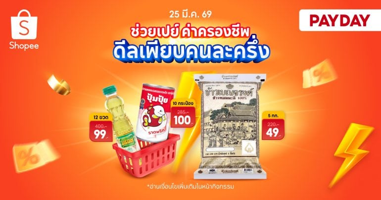 ในยุคที่การวางแผนการเงินเป็นเรื่องสำคัญอันดับหนึ่ง Shopee (ช้อปปี้) แพลตฟอร์มอีคอมเมิร์ซที่ครองใจชาวไทย ขอทำหน้าที่เป็นมากกว่าแค่ที่ซื้อขายสินค้า แต่เป็น "อีโคซิสเต็ม" ที่ช่วยยกระดับคุณภาพชีวิตและเพิ่มความยืดหยุ่นทางการเงินให้ผู้บริโภค ด้วยการนำเทคโนโลยีมาช่วยให้การเข้าถึงสินค้าจำเป็นเป็นเรื่องง่าย ปลอดภัย และที่สำคัญคือต้อง "คุ้มค่าที่สุด" ปักหมุดวันช้อป: 24 - 27 มีนาคม 2026 เตรียมพบกับแคมเปญพิเศษ “Shopee Payday ช่วยเปย์ค่าครองชีพ ดีลเพียบคนละครึ่ง” ที่ตั้งใจออกแบบมาเพื่อลดภาระค่าใช้จ่ายในชีวิตประจำวันโดยเฉพาะ Highlights: ดีลเด็ดช่วยเซฟงบครัวเรือน ช้อปปี้คัดสรรสินค้าอุปโภคบริโภคที่จำเป็นต่อการดำรงชีวิตมาจัดโปรโมชั่นสุดคุ้ม เพื่อเสริมสภาพคล่องให้ผู้บริโภคชาวไทย: จ่ายบิลก็คุ้ม !18/03/2026