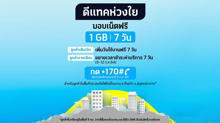 ดีแทคมอบเน็ตฟรี 1 GB ให้กับลูกค้าที่อยู่ในรัศมี 5 กม. ในเหตุการณ์ไฟไหม้ที่โรงงาน ซ.กิ่งแก้ว