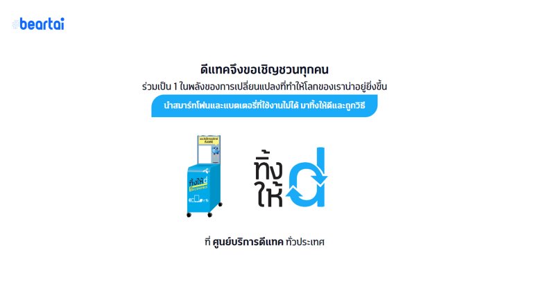 DTAC เปิดแคมเปญ "ทิ้งให้ดี ทิ้งที่ดีแทค" เป็นแคมเปญทิ้งขยะอิเล็กทรอนิกส์ ร่วมกับ DTAC เพื่อนำไปกำจัดทิ้งอย่างถูกวิธี โดยจากการสำรวจพบว่า ขยะมือถือ เป็นส่วนนึงของขยะอิเล็กทรอนิกส์ ซึ่งคิดเป็น 65% ของของเสียอันตรายจากชุมชน จำนวน 414,600 ตัน และได้รับการกำจัดอย่างถูกต้องเพียงแค่ 13% เท่านั้น ที่ผ่านมาในปี 2559 ประชากรไทย 70 ล้านคน มีโทรศัพท์มือถือใช้มากกว่า 122% และจะมีขยะมือเพิ่มขึ้นเกือบ 10 ล้านเครื่องไปเลยทีเดียว ดีแทคจึงคิดแคมเปญเชิญชวนทุก ๆ คนนำขยะอิเล็กทรอนิกส์เหล่านี้ไปกำจัดทิ้งอย่างถูกวิธี เนื่องจากร้านรับซื้อของเก่าหลาย ๆ แห่งเอาไปกำจัดทิ้งอย่างไม่ถูกวิธีทำให้เกิดปัญหาตามมา อาทิ สารหนูและตะกั่วเกินค่ามาตรฐานของดินที่ใช้เพื่อการอยู่อาศัยและเกษตรกรรม ทำให้สารเหล่านี้ปนเปื้อนมากับแหล่งน้ำและดินที่ใช้ทำการเกษตร ปนเปื้อนมากับผลผลิตและส่งผลเสียต่อผู้บริโภคโดยตรง นอกจากนี้ยังมีสิทธิ์ในการรับเสื้อรักษ์โลกจากดีแทค โดย ถ่ายภาพขณะกำลังทิ้งมือถือเก่าที่ศูนย์บริการดีแทคโพสต์เล่าถึงความทรงจำที่มีต่อมือถือเครื่องนี้พร้อมติด #ทิ้งให้ดีทิ้งที่ดีแทคโพสต์ลง Facebook Twitter หรือ Instagram พร้อมแท็กเพื่อน 3 คนและเปิดโพสต์เป็นสาธารณะสามารถร่วมสนุกได้ทั้งลูกค้าดีแทค และบุคคลทั่วไป โดยสามารถดูจุดรับทิ้งขยะมือถือที่ศูนย์บริการ dtac ได้ตามแผนที่ด้านล่างนี้เลยครับ…กองบรรณาธิการ BT | 1990 days ago
