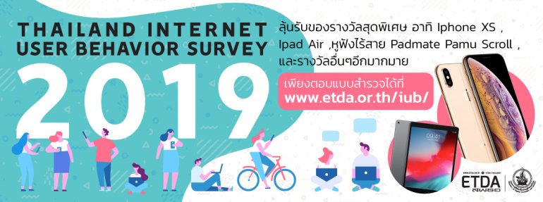 สำนักงานพัฒนาธุรกรรมทางอิเล็กทรอนิกส์ (สพธอ.) หรือ ETDA (เอ็ตด้า) กระทรวงดิจิทัลเพื่อเศรษฐกิจและสังคม ชวนทุกคนร่วมกันเป็นส่วนหนึ่งในการแชร์ประสบการณ์พฤติกรรมการใช้อินเทอร์เน็ต โดยตอบแบบสำรวจพฤติกรรมผู้ใช้อินเทอร์เน็ตในประเทศไทย ปี 2562 ที่ได้สำรวจอย่างต่อเนื่องในทุก ๆ ปี ซึ่งปีนี้พิเศษยิ่งขึ้นด้วยการสุ่มจับรางวัลสำหรับผู้ร่วมตอบแบบสำรวจ ไฮไลต์ของคำถามในปีนี้คือ ดิจิทัลไอดี โดยผลสำรวจจะเก็บเป็นฐานข้อมูลสำคัญให้กับหลาย ๆ หน่วยงาน ทั้งภาครัฐและเอกชน จะได้นำข้อมูลไปใช้ในการกำหนดนโยบาย กลยุทธ์ในการสื่อสาร เพื่อการสร้างความรู้ความเข้าใจเกี่ยวกับการพิสูจน์ยืนยันตัวตนทางดิจิทัลให้แก่ประชาชน เพื่อให้ประชาชนได้ตระหนักถึงประโยชน์ รวมทั้งการใช้งานระบบพิสูจน์ยืนยันตัวตนอย่างเกิดประสิทธิภาพ เพื่อประโยชน์แก่ประเทศชาติ ETDA ขอเชิญชวนร่วมตอบแบบสำรวจได้ ที่นี่ นอกจากนี้ยังมีการสุ่มจับ รางวัลสุดพิเศษสำหรับผู้ร่วมตอบแบบสำรวจ อาทิ iPhone XS , iPad Air 10.5 นิ้ว , หูฟังไร้สาย Padmate Pamu Scroll , แบตเตอรีสำรอง ELOOP รุ่น E14 20000 mAh และบัตรชอปปิงออนไลน์ มูลค่า 200 บาท…วาณิชชา สายเสมา | 2354 days ago