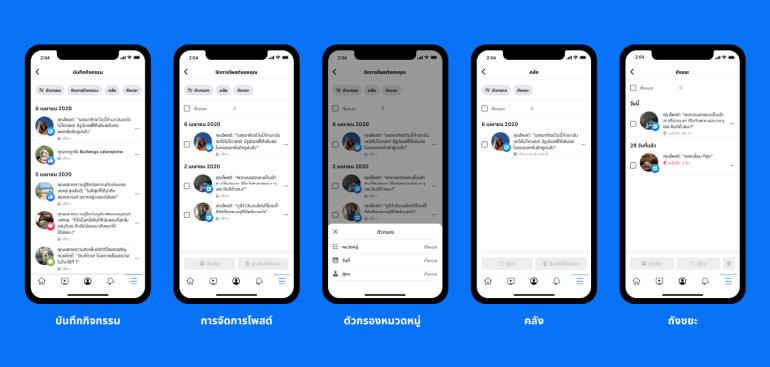 Facebook เข้าใจดีว่าเป็นธรรมดาที่สิ่งต่างๆ ในชีวิตของเราจะเปลี่ยนไปตามแต่ละช่วงเวลา ดังนั้น การสร้างแพลตฟอร์มที่ช่วยให้ผู้ใช้งานสามารถจัดการกับการแสดงออกถึงตัวตนบนโลกออนไลน์ได้อย่างง่ายดายจึงเป็นสิ่งที่จำเป็น เพื่อให้เนื้อหาบน Facebook สะท้อนถึงตัวตนในปัจจุบันของพวกเขาได้อย่างแม่นยำยิ่งขึ้น Facebook จึงได้เปิดตัวเครื่องมือจัดการกิจกรรม (Manage Activity) เพื่อช่วยให้ผู้ใช้งานสามารถจัดการกับโพสต์เก่าๆ ได้ในที่เดียว ฟีเจอร์สำหรับจัดเก็บนี้จะเปิดให้ใช้งานบนมือถือในช่วงแรก และพร้อมให้ใช้งานบนเดสก์ท็อปและ Facebook Lite ในอนาคต โดยผู้ใช้งานสามารถเลือกเก็บหรือลบโพสต์ที่ไม่ต้องการทีละโพสต์หรือจัดการโพสต์จำนวนมากพร้อมกันผ่านบันทึกกิจกรรม โดยก่อนหน้านี้ได้เปิดตัวเครื่องมือล่าสุด ได้แก่ การตรวจสอบกิจกรรมภายนอก Facebook และ การตรวจสอบความเป็นส่วนตัว เพื่อให้ผู้ใช้งานจัดการกับประสบการณ์บนแพลตฟอร์มได้อย่างมีประสิทธิภาพยิ่งขึ้น เครื่องมือจัดการกิจกรรมช่วยให้ผู้ใช้งานย้ายโพสต์บน Facebook ที่ไม่ต้องการให้คนอื่นเห็นและนำไปเก็บไว้ในคลังข้อมูลที่สามารถเข้าถึงได้เฉพาะเจ้าของโพสต์นั้นๆ ผ่านฟีเจอร์สำหรับจัดเก็บ นอกจากนี้ ยังสามารถลบโพสต์ที่ไม่ต้องการไปยังถังขยะได้อีกด้วย โพสต์ที่อยู่ในถังขยะจะมีอายุ 30 วันก่อนที่ระบบจะลบทิ้ง เว้นแต่ผู้ใช้งานจะเลือกลบหรือกู้คืนด้วยตนเองก่อน เครื่องมือจัดการกิจกรรมยังช่วยให้ผู้ใช้งานเรียกดูและจัดการโพสต์จำนวนมากพร้อมกัน และเลือกผ่านตัวกรองต่างๆ เช่น โพสต์โดยเพื่อนคนใดหรือช่วงเวลาไหนได้อีกด้วย วิธีการเข้าไปจัดการโพสต์ในอดีต เข้าไปหน้าโปรไฟล์ตัวเอง แล้วกดที่ปุ่ม 3 จุด ใต้รูปโปรไฟล์เลือก Activity log หรือ บันทึกกิจกรรมกดที่ Manage Activity หรือ จัดการกิจกรรมเลือก…กองบรรณาธิการ BT | 2086 days ago