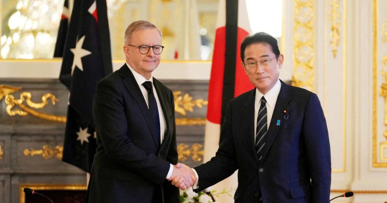นายกรัฐมนตรีญี่ปุ่น และ แอนโทนี แอลบานีส (Anthony Albanese) นายกรัฐมนตรีออสเตรเลียร่วมกันลงนามในข้อตกลงทวิภาคีด้านความมั่นคง ณ เมืองเพิร์ท ออสเตรเลีย ซึ่งมีเป้าหมายหลักคือการต่อต้านอิทธิพลจีนจตุรวิทย์ เครือวาณิชกิจ | 1238 days ago