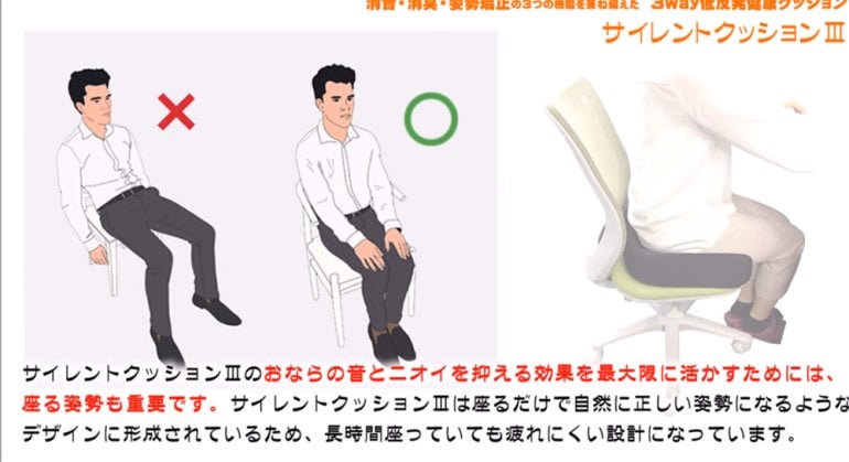 เป็นที่ทราบกันดีว่าประเทศญี่ปุ่นนั้นขึ้นชื่อเรื่องความสุภาพอ่อนน้อมถ่อมตน ซึ่งด้วยนิสัยน่ารักกุ๊บกิ๊บนี้เองพวกเขายังเข้าอกเข้าใจถึงปัญหาการตดของพนักงานออฟฟิศว่ามันหน้าขายหน้าเพียงใดเวลาที่เปล่งทำนองและกลิ่นใส่คนอื่น พวกเขาจึงได้ทำแผ่นรองก้นที่สามารถลดกลิ่นและเสียงของตดได้!warayoot chertsrichookret | 3417 days ago