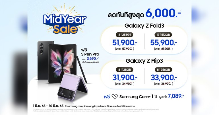 ซัมซุงส่งความสุขให้กาแลคซี่แฟนช่วงกลางปี จัดโปรโมชั่น Galaxy Mid Year Sale ยกทัพสมาร์ตโฟนและแท็บเล็ตรุ่นยอดนิยม มอบส่วนลดทันทีสูงสุด 6,000 บาท พร้อมรับสิทธิพิเศษอีกมากมาย ตั้งแต่วันนี้ – 30 มิถุนายน 2565 ที่ samsung.com, Samsung Experience Store และ ร้านค้าที่ร่วมรายการ14/09/2021