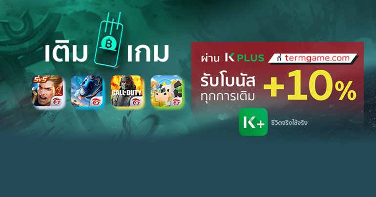เติมเกมบน termgame.com เลือกจ่ายด้วย K PLUS รับโบนัสทันที 10%