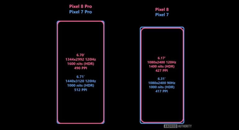 ล่าสุดมีข้อมูลจอแสดงผลของ Google Pixel 8 และ Google Pixel 8 Pro พร้อมเทียบกับขนาดจะของรุ่นปัจจุบันทั้ง Google Pixel 7 และ Google Pixel 7 Pro