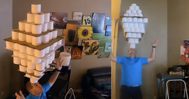 ชายคนนี้สร้างสถิติใหม่กินเนสส์บุ๊ก วางทิชชูได้ 101 ม้วนบนหน้าผาก