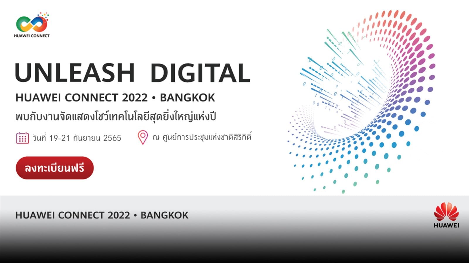 หัวเว่ยเปิดฉาก ‘HUAWEI CONNECT 2022’ งานมหกรรมประจำปีระดับโลกด้านเทคโนโลยีไอซีที ซึ่งจัดขึ้นต่อเนื่องเป็นปีที่ 7 โดยเริ่มขึ้นวันนี้ ณ กรุงเทพมหานคร ภายใต้แนวคิด ‘ปลดปล่อยพลังแห่งดิจิทัล’ (Unleash Digital) โดยรวบรวมผู้นำอุตสาหกรรมไอซีที รวมถึงผู้เชี่ยวชาญและพันธมิตรทั่วโลกกว่า 10,000 คนร่วมหารือแนวทางปลดล็อคศักยภาพด้านดิจิทัล, ส่งเสริมเศรษฐกิจดิจิทัล, และพัฒนาอีโคซิสเต็มดิจิทัลให้แข็งแกร่ง16/09/2022