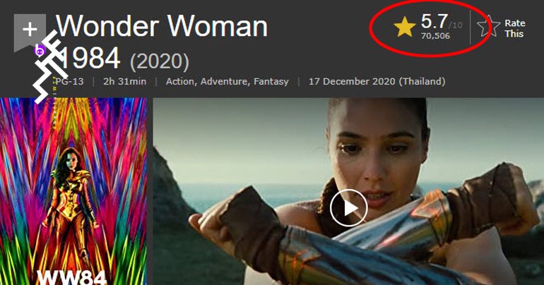 ตั้งแต่หนัง Wonder Woman 1984 ออกฉาย ก็ทยอยสร้างสถิติใหม่เรื่อย ๆ และบางสถิติก็ไม่ใช่ในทางดี อย่างในเรื่องนี้ หนังได้คะแนนในเว็บไซต์ระดับโลกอย่าง IMDB ได้ต่ำที่สุดในจักรวาลหนังดีซี IMDB เป็นเว็บไซต์ที่รวบรวมฐานข้อมูลเกี่ยวกับภาพยนตร์ที่มากที่สุด ได้รับความนิยมและความเชื่อถือจากคอหนังทั่วโลก คะแนนของหนังแต่ละเรื่องในเว็บไซต์นี้จะเป็นคะแนนเฉลี่ยจากบรรดาสมาชิกของเว็บไซต์ที่โหวตเข้ามา ซึ่งทางเว็บเองก็ขยันอัปเดตคะแนนดิบวันละหลายครั้งเพื่อให้ได้ข้อมูลที่รวดเร็วทันเหตุการณ์ที่สุด ขณะที่เขียนอยู่นี้มีสมาชิกโหวตเข้ามาแล้ว 70,xxx คน ทำให้ Wonder Woman 1984 ได้คะแนนอยู่ที่ 5.7สุชยา เกษจำรัส | 1841 days ago