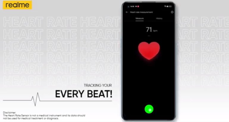 บัญชีทวิตเตอร์ @MadhavSheth1 ซึ่งเป็นบัญชีทวิตเตอร์ของรองประธานของ Realme ได้ทวีตข้อความพร้อมคลิปวิดีโอความยาว 22 วินาทีว่า Realme 9 Pro+ จะมีเซนเซอร์วัดอัตราการเต้นของหัวใจเพื่อวัดชีพจรของผู้ใช้ โดยเซนเซอร์ดังกล่าวจะใช้เซนเซอร์สแกนนิ้วมือใต้หน้าจอในการวัดอัตราการเต้นหัวใจ04/12/2019