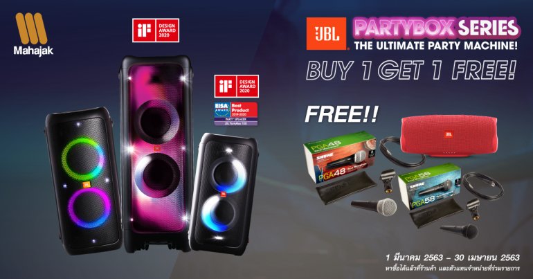 JBL Partybox Series ลำโพงสายปาร์ตี้ พร้อมโปรโมชันของแถมสุดคุ้ม Buy 1 Get 1 Free!!