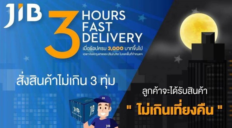 JIB เผยบริการ 3 Hours Fast Delivery ส่งถึงบ้านในวันนั้นเมื่อสั่งซื้อก่อน 3 ทุ่ม !