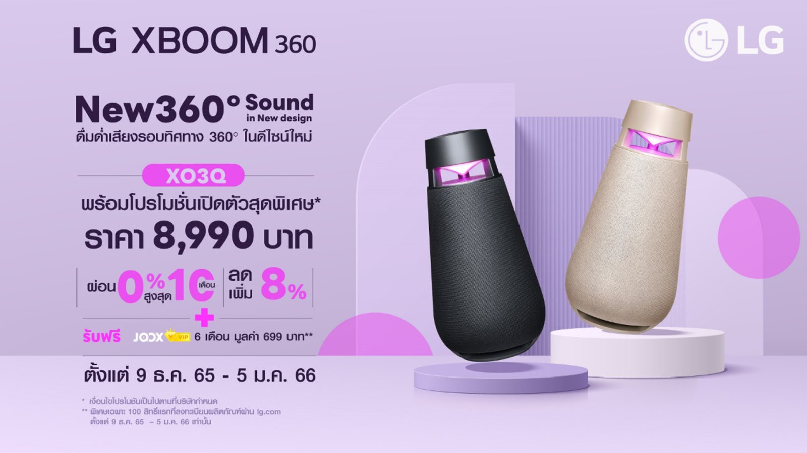 บริษัท แอลจี อีเลคทรอนิคส์ (ประเทศไทย) จำกัด เอาใจผู้บริโภคที่ต้องการดื่มด่ำกับเสียงเพลงในทุกที่ทุกเวลา เปิดตัวลำโพงบลูทูธแบบพกพาใหม่ล่าสุด LG XBOOM360 รุ่น XO3Q มาในดีไซน์ใหม่ ขนาดกะทัดรัดยิ่งขึ้น แต่ยังคงเอกลักษณ์ในรูปทรงตะเกียงสำหรับการเปิดรับประสบการณ์เสียงรอบทิศทาง 360° ด้วยพลังเสียง 50 วัตต์ พร้อมการใช้งานที่ยาวนานด้วยแบตเตอรี่ที่ชาร์จครั้งเดียว สามารถใช้งานได้นานถึง 24 ชั่วโมง พร้อมคุณสมบัติกันน้ำและกันฝุ่นระดับ IP54 จึงเหมาะสำหรับการพกพาไปใช้งานในสถานที่ต่าง ๆ ฟีเจอร์โหมดแสงไฟพิเศษยังอัปเกรดมาเพื่อเสริมประสบการณ์ฟังเพลงทุกแนวทีมคอนเทนต์ BT | 1208 days ago