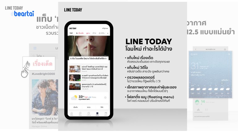 LINE TODAY เดินหน้าปรับโฉมใหม่ให้สะอาดตา อ่านง่าย พร้อมปรับระบบคัดเลือกคอนเทนต์ให้ตรงกับความความชอบของผู้อ่านมากยิ่งขึ้น ตอกย้ำการเป็น Personalized Infotainment Portal ศูนย์รวมข่าวสารและบทความที่มีสาระประโยชน์และความเพลิดเพลิน งานนี้ยังเดินหน้าเพิ่มฟังก์ชันตอบโจทย์พฤติกรรมนักอ่านออนไลน์ เดินหน้าเพิ่มเนื้อหาและข่าวสารประเภทไลฟ์สไตล์ – บันเทิงเอาใจคนรุ่นใหม่ ขณะเดียวกันก็ยังเน้นข่าวสาร บทความ และประเด็นฮอตจากพันธมิตรชั้นนำของเมืองไทยกว่า 260 ราย ซึ่งตั้งแต่เริ่มปรับโฉมในช่วงเดือนที่ผ่านมา ก็ส่งให้ตัวเลขจำนวนการคลิกอ่านบทความ (Page View) บน LINE TODAY เพิ่มขึ้นมากถึง 42% การปรับโฉมใหม่นี้สามารถชวนให้คนเข้ามาอัปเดตข่าวสารบนแพลตฟอร์มเพิ่มขึ้นมากกว่าเท่าตัวอีกด้วย 5 สิ่งใหม่บน LINE TODAY มีอะไรบ้าง? เพิ่มแท็บ “เรื่องเด็ด” รวมประเด็นร้อนครบจบในแท็บเดียว แท็บใหม่ที่รวบรวม “เรื่องเด็ด” ทั้งข่าวสาร บทความ และเรื่องราวฮอตฮิตซึ่งกำลังเป็นที่พูดถึงในสังคมและโลกโซเชียลแบบเรียลไทม์ โดยนำเสนอ แง่มุมที่หลากหลายจากแหล่งพันธมิตรสื่อที่แตกต่างกันและน่าเชื่อถือ รู้เรื่อง ครบ จบในแท็บเดียว เพราะ LINE TODAY รวบรวมมาให้หมดแล้ว เพิ่มแท็บ “วิดีโอ” สะดวกอ่านก็เน้นหนัก สะดวกดูก็จัดเต็ม…กองบรรณาธิการ BT | 1978 days ago