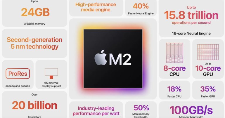 เปิดตัวชิป Apple M2 ชิป Silicon รุ่นล่าสุด กราฟิกแรงกว่า M1 ถึง 35%!