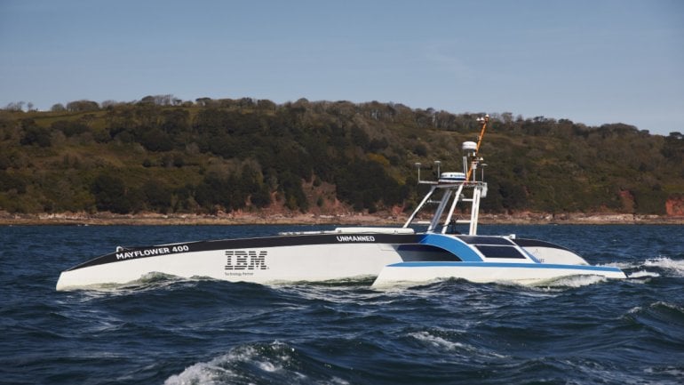 Mayflower Autonomous Ship : MAS เป็นเรือไร้คนขับที่ใช้พลังงานแสงอาทิตย์เพื่อแล่นสำรวจรวบรวมข้อมูลสิ่งแวดล้อมในมหาสมุทร แล้วนำไปใช้ในการศึกษาทางวิทยาศาสตร์ เช่น ภาวะโลกร้อน มลพิษจากไมโครพลาสติก และการอนุรักษ์สัตว์เลี้ยงลูกด้วยนมในทะเล ได้ติดตั้งซอฟต์แวร์ที่พัฒนาโดย IBM และพร้อมจะออกแล่นข้ามมหาสมุทรแอตแลนติกต้น มิ.ย. นี้ หลังจากที่การเปิดตัวที่ชายฝั่งพลิมัทของประเทศอังกฤษเมื่อ 16 กันยายน16/09/2020